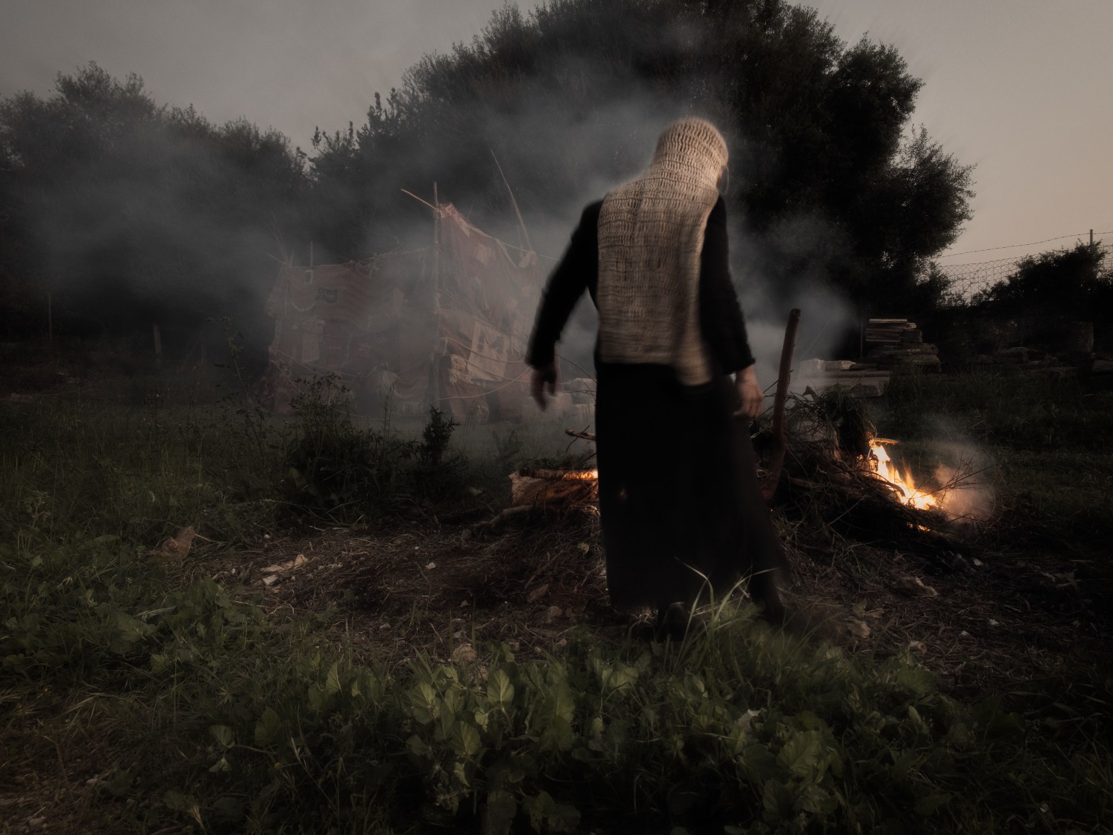 La gestación de este vídeo performance nace durante el desmonte de la anterior instalación de Marie-Noëlle Ginard “Refugio” (2022) llevada a cabo en Can Monroig. Proceso en el que se retiraron aquellas pesadas telas que recubrían los refugios o cabañas de la exposición.