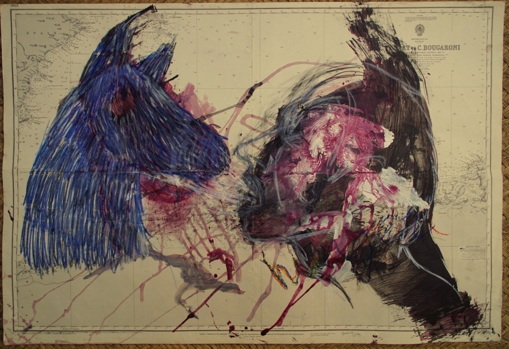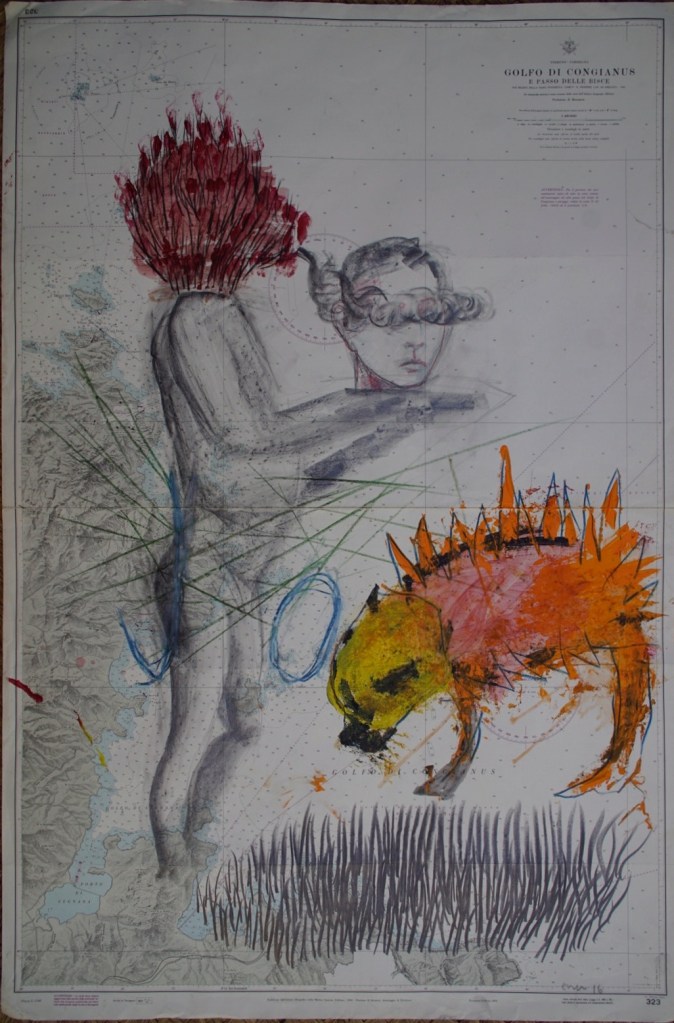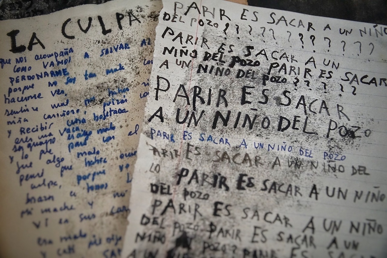 Todo el mundo ríe por dentro Humo risas empolladas de dos días Cabezas calentadas con frases inoportunas Lecciones inacabadas Delirios de profesores Ácido en el pecho Películas de Bergman junto a la botella de cerveza Coca-cola escondidas y chocolate compartido entre dos miradas de reserva Tentativas de aproximación Humo risas palabras sin sentido-con sentido Conversaciones entre sordos Amistades montadas sobre la soledad de un día Besos dados en la borrachera de una noche Gente que mira pero no ve Gente hablando sin decir nada Gente oyendo sin escuchar La facultad es un cadáver y nosotros hemos hecho un mundo de ese cadáver Amontonando libros sobre la mesa grande- Kropotkin, Bakunin, Gramsci- ¡Coño! ya está bien Palabras sin sentido dichas cuando ya no se sabe (de qué) hablar Momentos vacíos Vacíos intermitentes Largos Inacabables -Parménides protesta- Vacíos que nos agobian La incomunicación flota sobre nuestras cabezas Alguien da una patada en mi estómago Mentes calenturrientas Besos calenturrientos ¡Empollona! ¡puaj qué gente! Cierra la puerta Mira hacia atrás Disimula tu enfado Saoner sonríe bajo su chaqueta Malditos cerdos Soliloquios ridículos Frases que se amontonan Tal vez alguien las recuerde luego Amistad de odio Sangre que correrá ¡Calentorras! No se nos va a hundir el mundo por esto Secretos que se escurren las miradas nos delatan Triste soledad de años Alguien rompe el silencio Risa general Vuelta al encierro Tratando de encontrar alguna frase ocurrente El tiempo se perdió debajo de las sillas Quien nos controla? Tal vez un circo nos contrate Texto: Monólogo interior, Noëlle Ginard (18 años) Escrito en el bar de la facultad de filosofía, Son Malferit, Palma, abril de 1978. Textos escritos entre 1976 y 1978. Tenía 16-18 años. Los he estado leyendo tras muchos años en que han estado guardados. Me han sorprendido por su intensidad, la rabia contenida, el grado de lucidez, la soledad que sentía. Aunque tengo la tentación de corregirlos, no lo he hecho, no tiene sentido. Se nota la influencia de la época, los textos y la música que escuchaba entonces. La falta de puntuación fue buscada, así que la mantengo tal cual. Los dibujos también son de esos años. Algunos poemas incluso me parecen buenos y han sido una fuente de inspiración para un momento de búsqueda interior, ahora a finales del 2021 con 62 años. Gracias a esa chica de 16 o 17 años que fui, ahora soy la que soy.